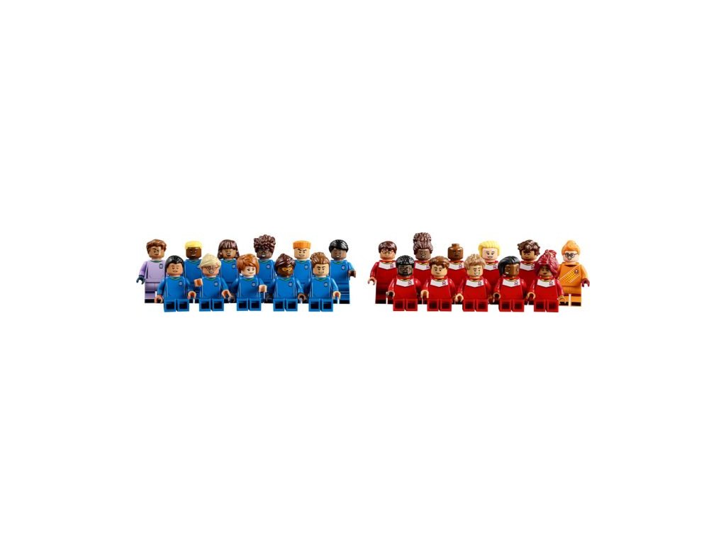 Váš tým snů – Stavebnice obsahuje 22 minifigurek LEGO® (11 pro každý tým), 44 různých hlav a 43 dílků účesů, takže si může upravit vzhled svých hráčů k obrazu svému