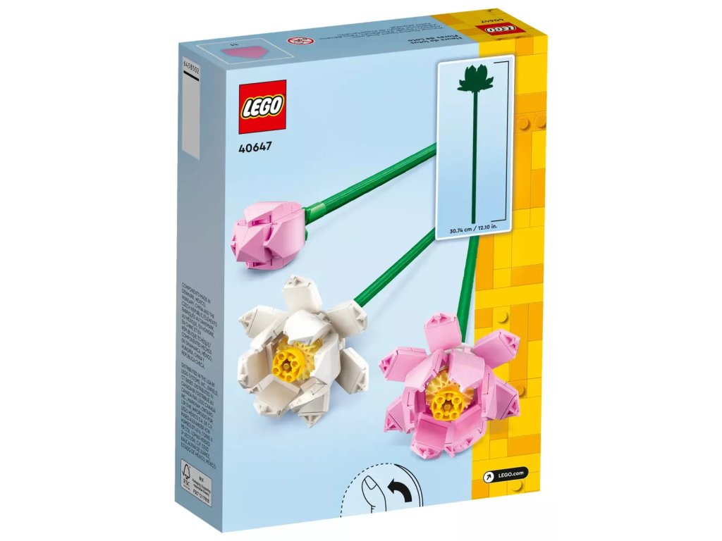 Napodobte divy přírody se stavebnicí LEGO® Lotosové květy (40647). Tato LEGO interpretace celosvětově uznávané květiny vyobrazuje 2 lotosy v plném rozkvětu a poupě, vše v delikátních odstínech bílé a růžové s dlouhými zelenými stonky pro vystavování ve váze. Tato nádherná LEGO kytice představuje skvělý dárek k narozeninám, Vánocům nebo jiné příležitosti a lze ji kombinovat s ostatními sestavitelnými květinovými sadami LEGO (prodávají se samostatně).