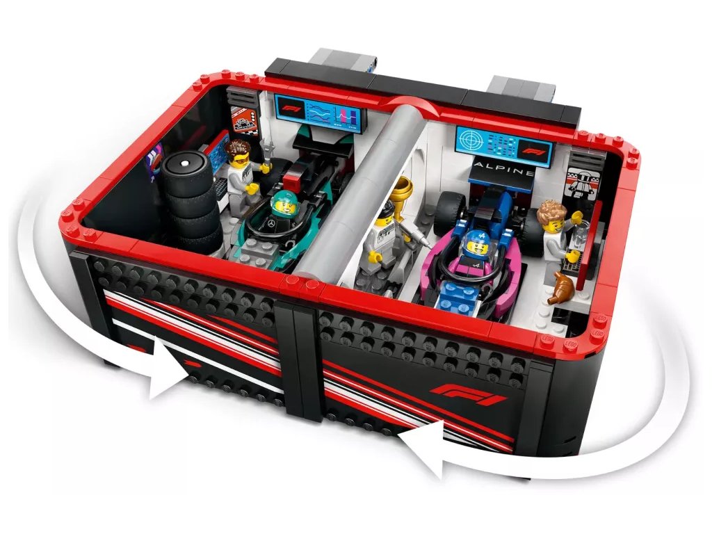- Ještě rychlejší akce s F1® – Nenechte si ujít i další stavebnice LEGO® Formula 1® (prodávají se samostatně), které si můžete postavit, vystavit a závodit s nimi s celou rodinou