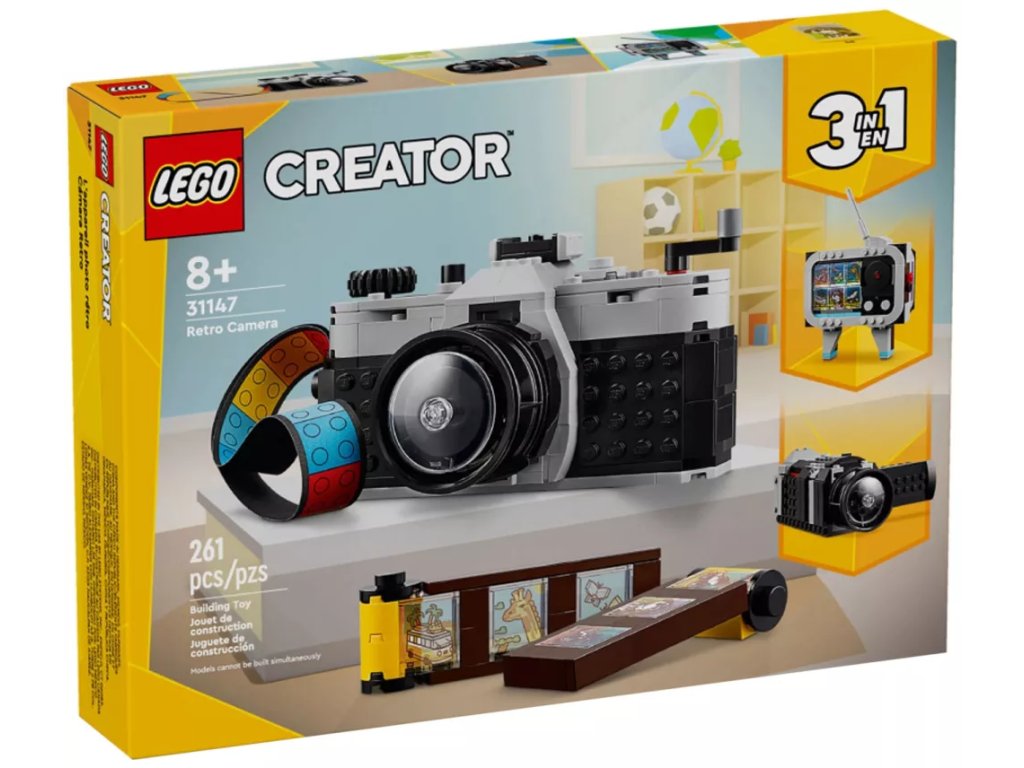 - 3 retro hračky v 1 stavebnici – Se stavebnicí LEGO® Creator 3 v 1 Retro fotoaparát se děti od 8 let ponoří do stavění a přestavování 3 různých modelů vintage technologie z jedné sady kostek