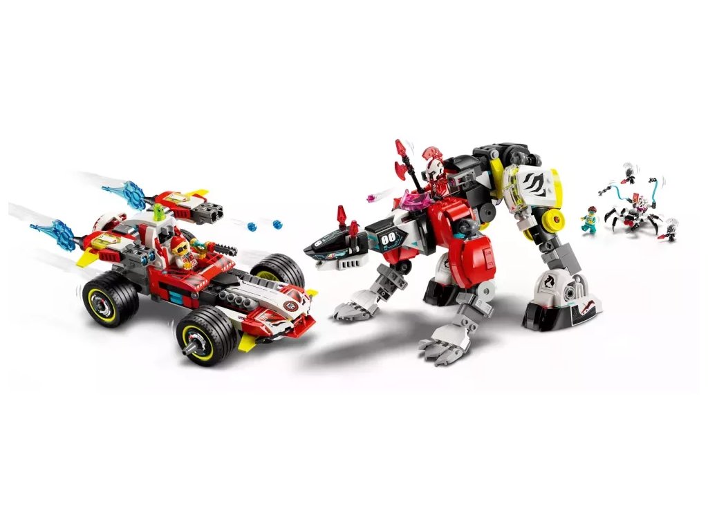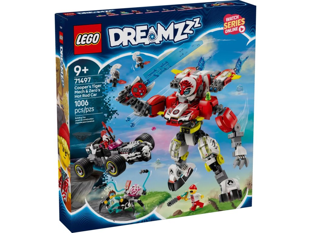 Stavebnice přináší hned 2 strhující možnosti stavění a děti si užijí spoustu zábavy při stavění červeného herního letadla, které pak přestaví na tygřího robota a hot rod nebo na rychlé závodní auto a robota. Tygří robot a robotické stvoření se dokážou hýbat a oba režimy stavění se pyšní řadou skvělých funkcí. Součástí stavebnice závodního auta je také minifigurka Coopera, Zera a snílka, Z-Flek, Kybermozkový pavouk a 2 Kybervěci, které vdechnou život akci a podnítí nápadité hraní.