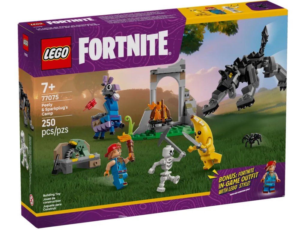 Nadchněte milovníky videoher stavebnicí LEGO® Fortnite® (77075) Peely a Sparkplug a jejich tábořiště pro děti od 7 let. Tato videoherní stavebnice je plná známých prvků a postav ze hry a inspiruje fanoušky k vytvoření vlastního dobrodružství ve světě LEGO Fortnite.