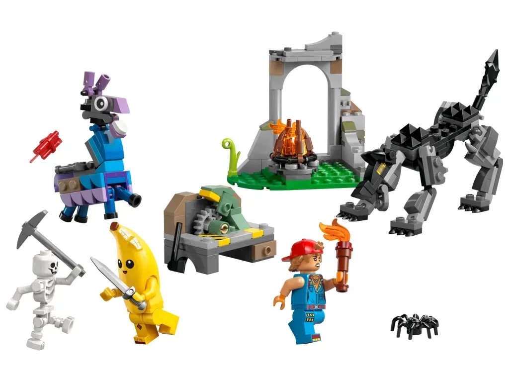 Stavebnice je inspirovaná prvními výzvami, se kterými se hráči setkávají ve videohře LEGO Fortnite Odyssey. Kluci a holky si užijí zábavu při stavění tábořiště, pracovního stolu a rozvalin, které lze rozebrat a přestavit. Nechybí figurka Supply Llamy a figurka vlka s pohyblivým ocasem a nohama. Stavebnici vdechují život minifigurky Peelyho, Sparkplug a kostlivce, které mají doplňky v podobě zbraní, a podněcují ke kreativnímu hraní.