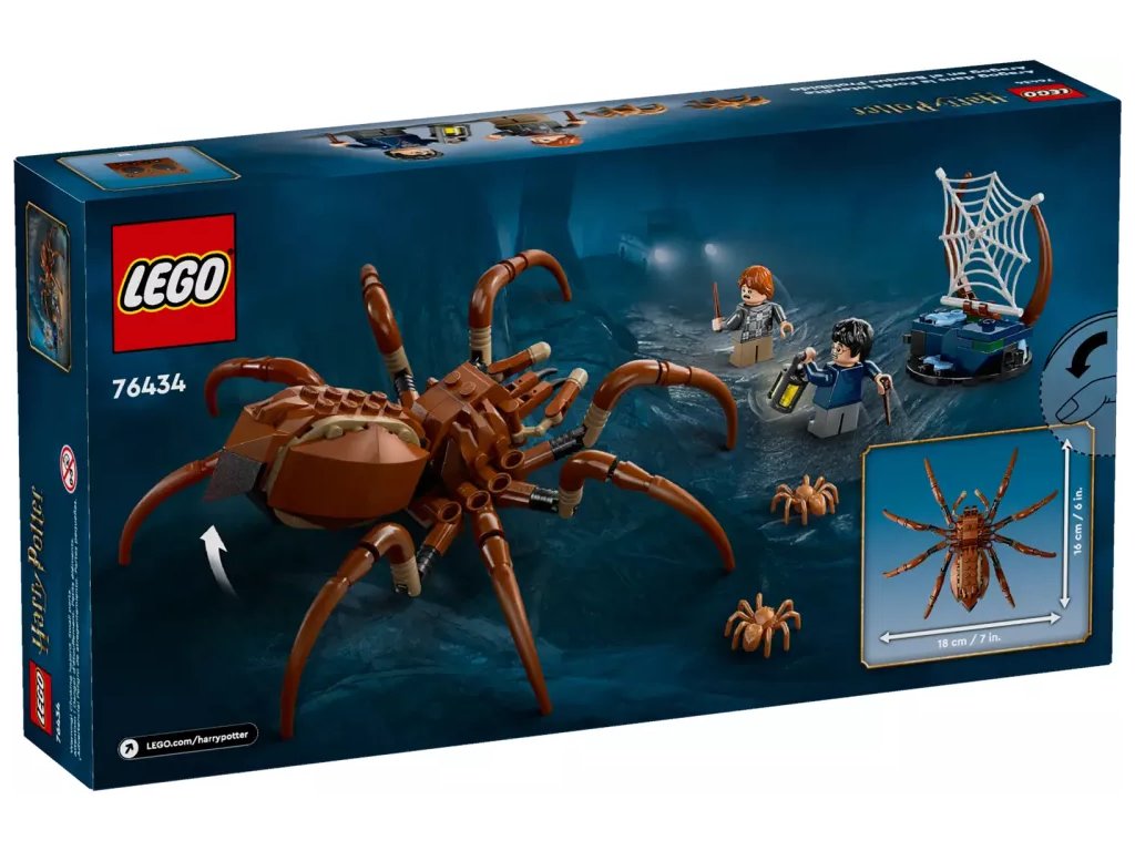 Malí kouzelníci, čarodějnice a mudlové se se stavebnicí s Aragogem (76434) z řady LEGO® Harry Potter™ vydají na kouzelná dobrodružství v Zapovězeném lese. Sada představuje magický dárek pro kluky, holky a fanoušky Harryho Pottera od 7 let. Součástí je dosud největší a nejrealističtější figurka Aragoga z kostek LEGO s pohyblivýma nohama, tesáky a makadly a minifigurky Harryho Pottera a Rona Weasleyho, z nichž má každý veselý a vyděšený obličej, a navíc hůlky a lucerna. Nechybí ani malá sestavitelná scéna ze Zapovězeného lesa, 2 figurky pavoučích mláďat a pavučina, která přináší ještě více kouzelných herních možností.