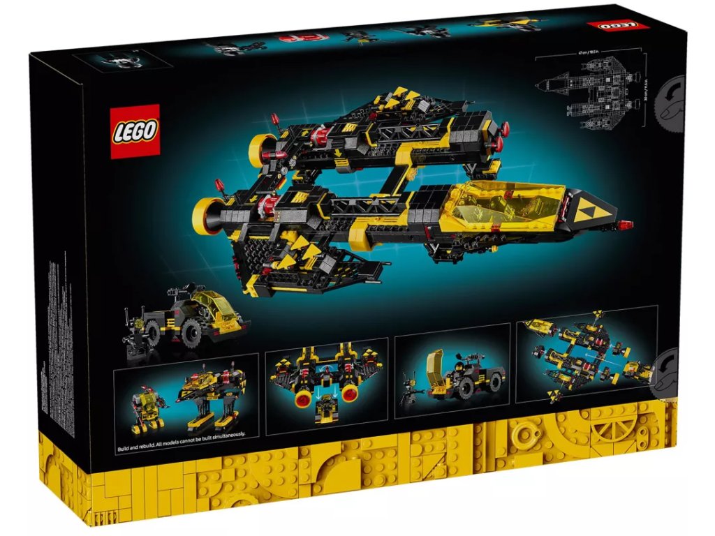 Součástí stavebnice jsou samostatné sáčky s kostkami, takže se skvěle hodí jako sólo nebo společný stavitelský projekt. Obsahuje tištěný návod na stavění modelu Blacktron Renegade a v aplikaci LEGO Builder najdete 3D návod, kde se dozvíte, jak model přestavět na Blacktron Alienator z 80. let.