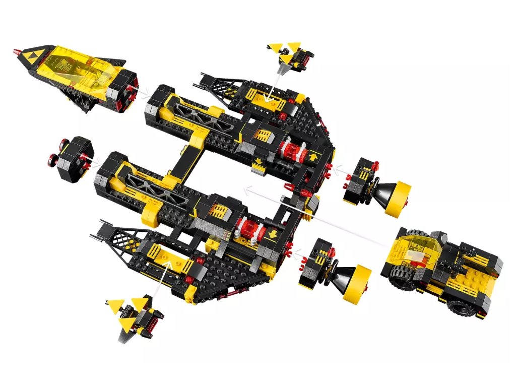 - Vlastnosti a funkce – Nasaďte planetární rover, nasaďte vesmírné spídry na křídla, spusťte podvozek a částečně překonfigurujte loď, abyste postavili raketoplán Blacktron