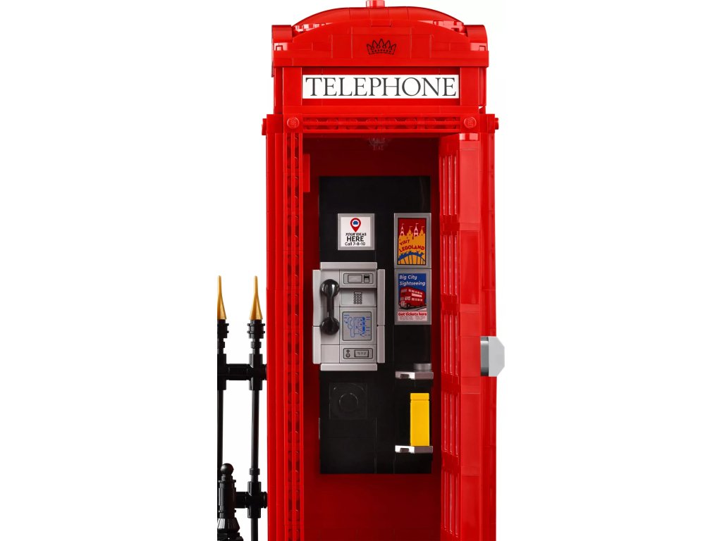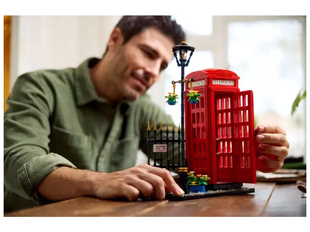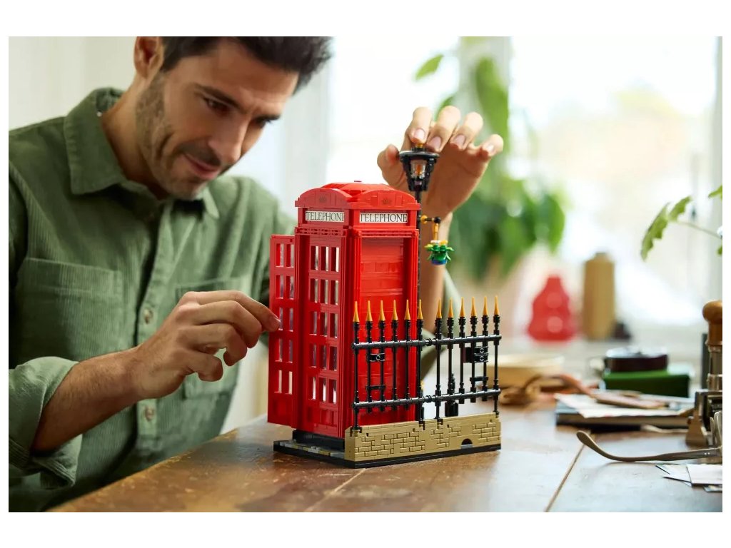 - Model Červené londýnské telefonní budky pro dospělé – S touto stavebnicí z řady LEGO® Ideas si postavíte ikonickou londýnskou telefonní budku K2 z kostek, která poslouží jako zábavný dárek pro milovníky cestování
