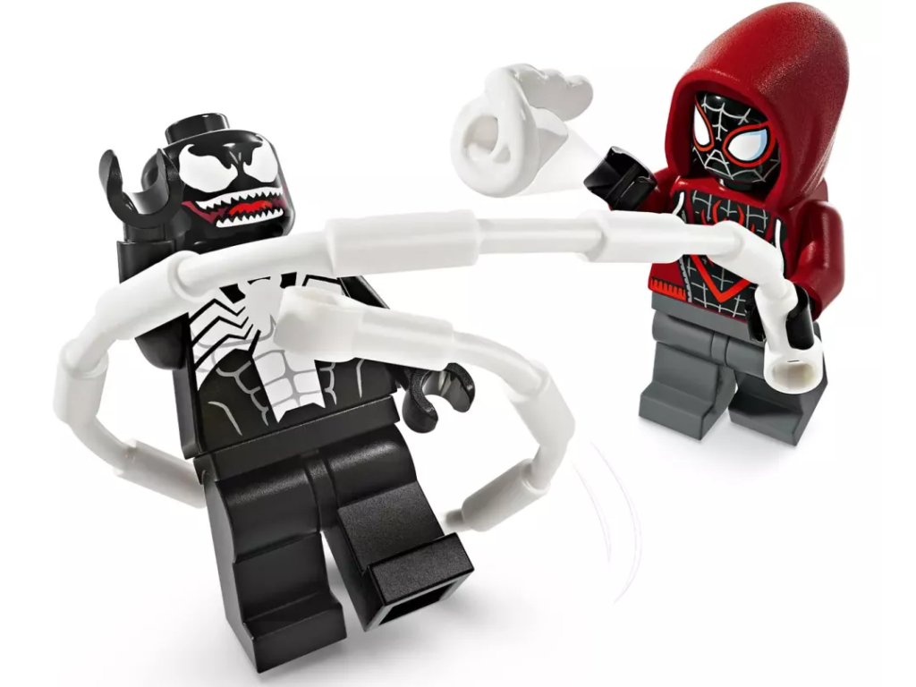- Pohyblivé robotické brnění a minifigurky – Součástí stavebnice je sestavitelné robotické brnění s kloubovými pažemi, nohama a prsty a minifigurky LEGO® Milese Moralese a Venoma
