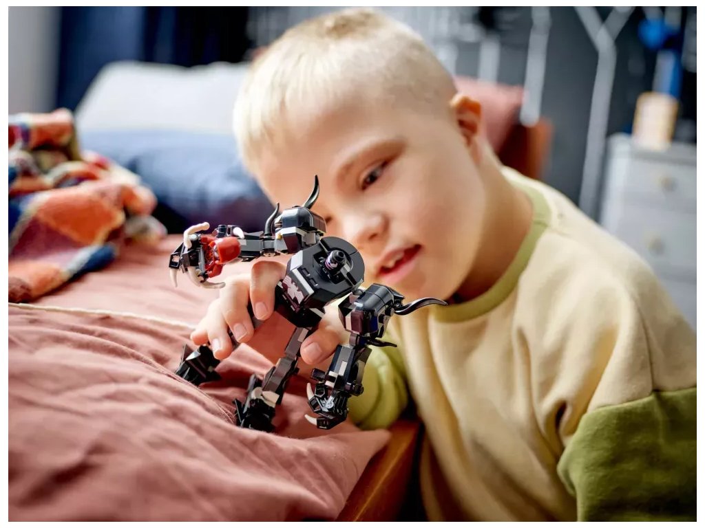 Sestavitelné robotické brnění Venoma má spoustu funkcí, včetně plně pohyblivých paží, nohou a rukou s drápy, které jsou dostatečně velké na to, aby uchopily minifigurku. Otevřete hrudník brnění a odhalte kokpit pro minifigurku Venoma. Nechybí ani minifigurka Milese Moralese se 2 ručními vystřelovači pavučin a ohebným pavučinovým „lanem“, které lze hned na několika místech připevnit k robotickému brnění Venoma. Děti mohou tuto stavebnici kombinovat s dalšími robotickými brněními z řady LEGO Marvel (prodávají se samostatně) a rozšířit nápadité herní možnosti. Pro ještě více digitální zábavy je zde zábavná a intuitivní aplikace LEGO Builder, kde mohou stavitelé přibližovat a otáčet modely ve 3D a sledovat postup.