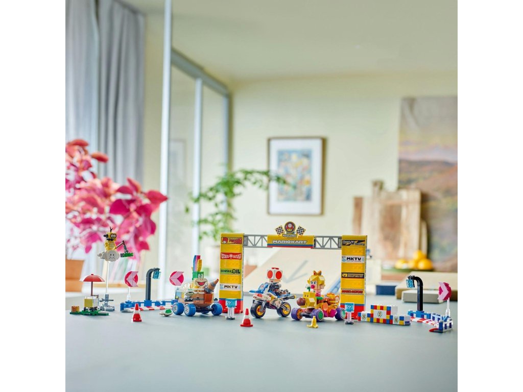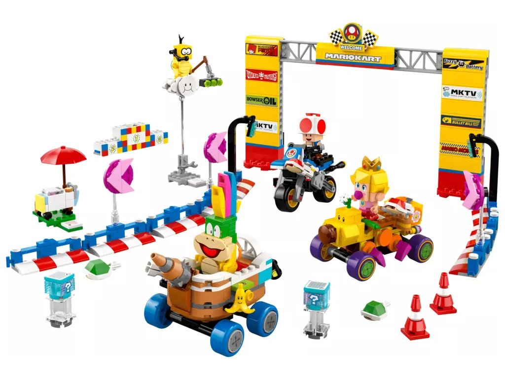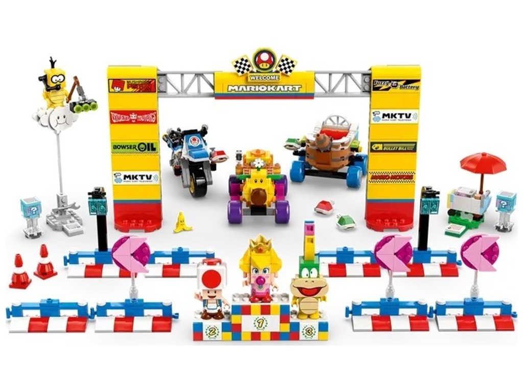 - Přizpůsobitelná závodní set – Set obsahuje vozidla Wild Wiggler, Landship a Standard Bike, která mohou střílet krunýře, Toadův vozík se sladkostmi, startovní bránu, Lakituův oblak a stupně vítězů