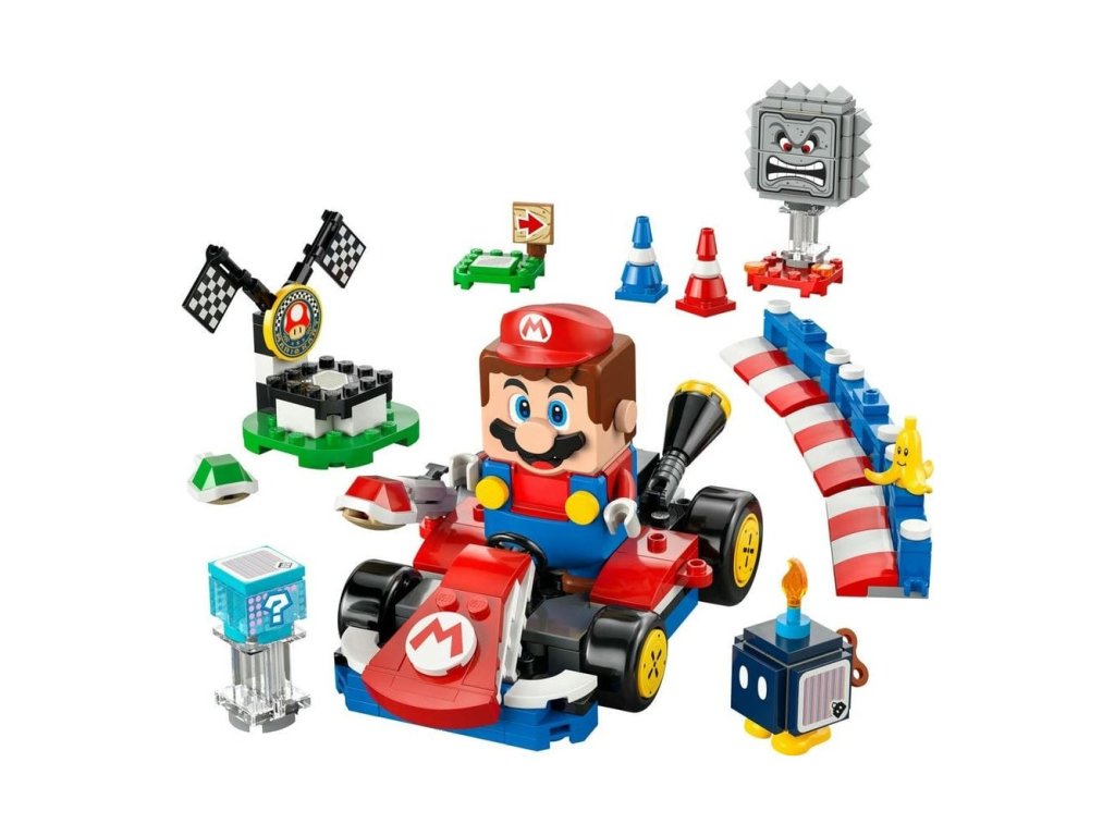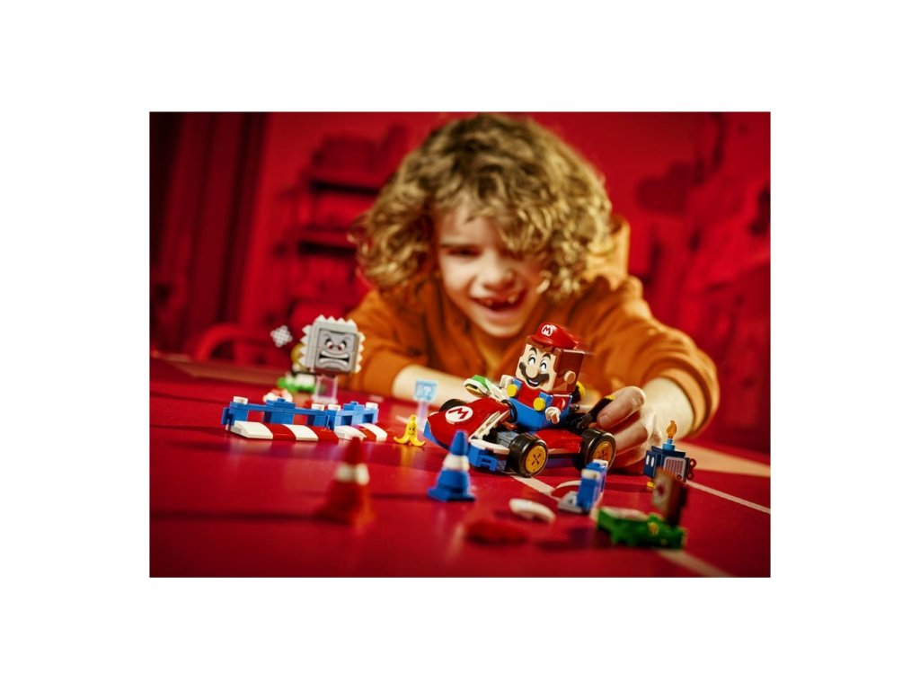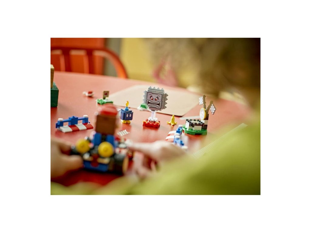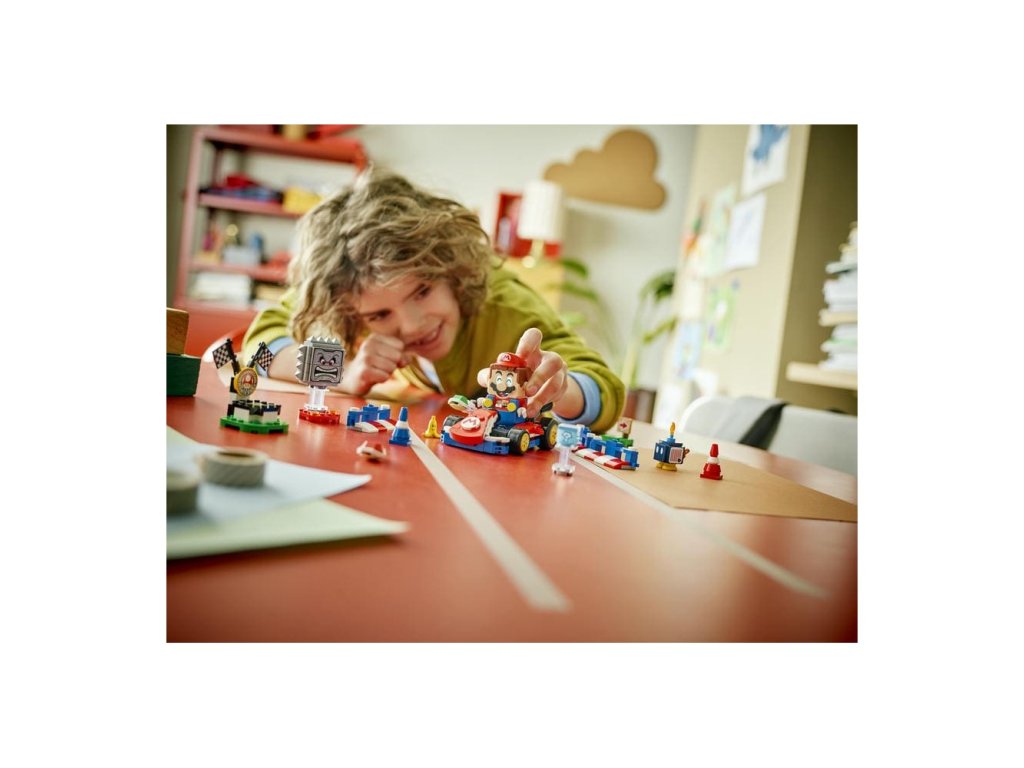 - Interaktivní hračka – Závoďte na motokáře Standard Kart s LEGO® Mariem, získejte digitální odměny z krabice Item Box, porazte Bob-omba a Thwompa, sledujte, jak LEGO Mario™ reaguje na zelené a červené destičky LEGO a mnoho dalšího