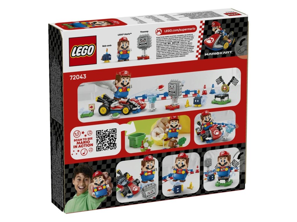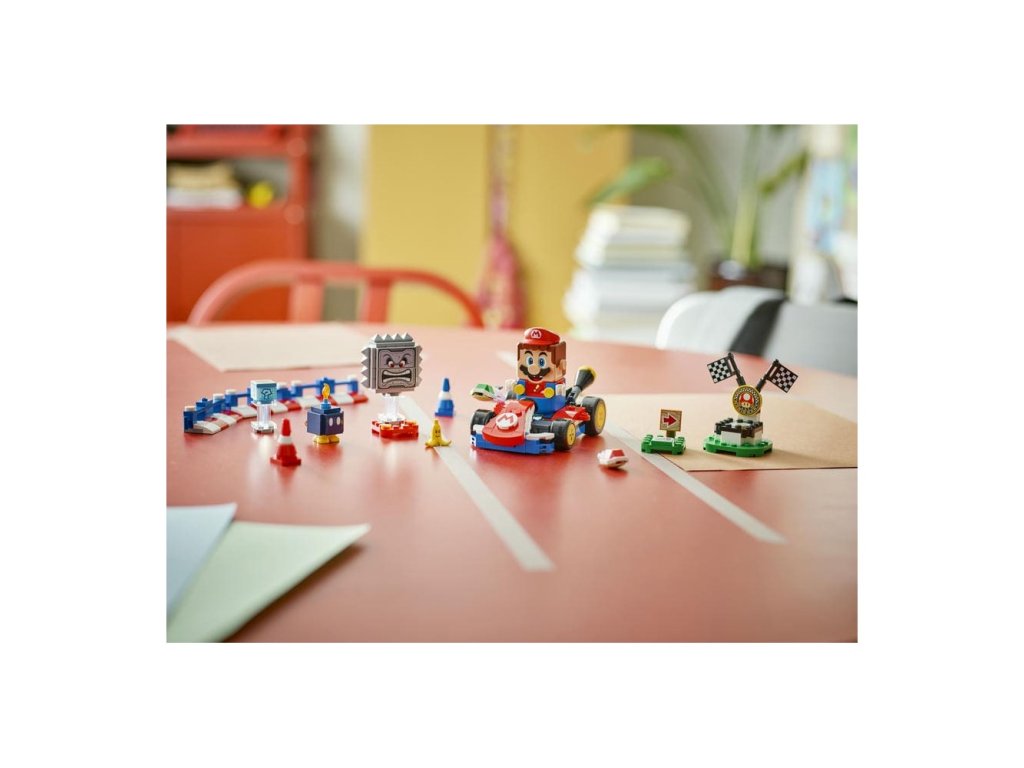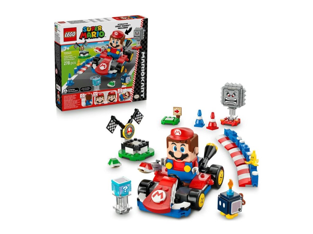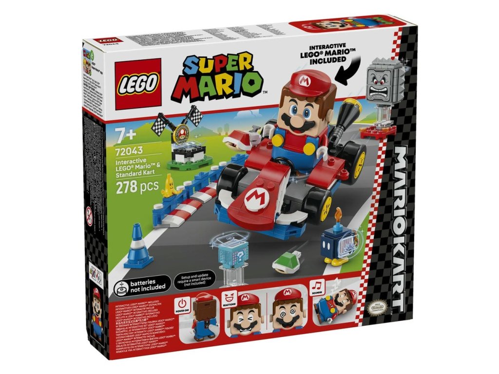 - Interaktivní hračka – Závoďte na motokáře Standard Kart s LEGO® Mariem, získejte digitální odměny z krabice Item Box, porazte Bob-omba a Thwompa, sledujte, jak LEGO Mario™ reaguje na zelené a červené destičky LEGO a mnoho dalšího