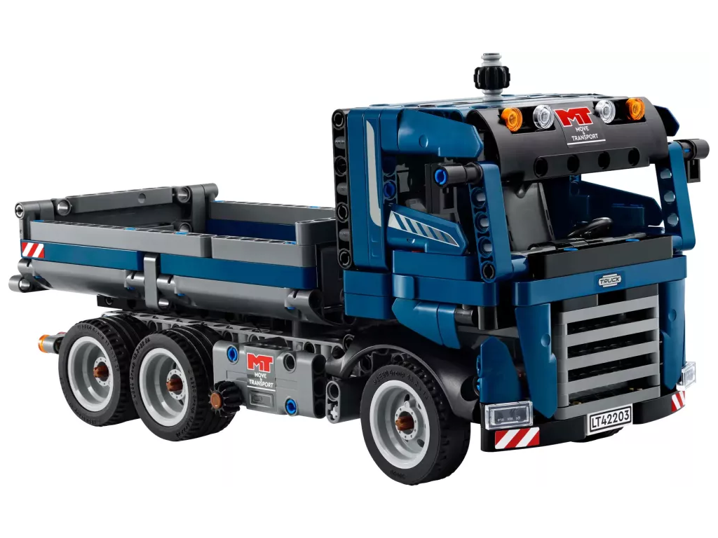 Děti od 9 let čekají nekonečná dobrodružství na staveništi se stavebnicí LEGO® Technic (42203) Nákladní sklápěč. Tato stavebnice modrého stavebního stroje umožňuje dětem od 9 let zahrát si na náročný pracovní den v roli řidiče sklápěče. Zajeďte se sklápěčem na místo a otočením knoflíku na boku náklaďáku sklopte korbu. Otevřete dveře, podívejte se dovnitř kabiny a pak s nákladním vozidlem vyrazte na další misi na staveništi.